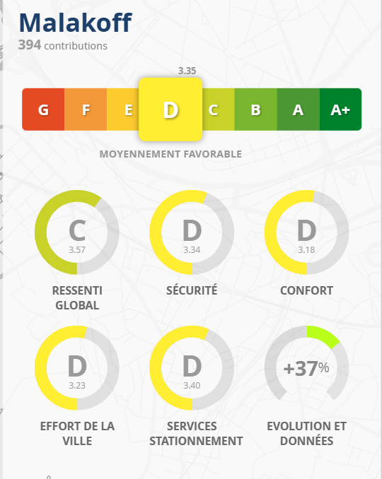 394 contributeurs ont noté le climat cyclable de notre ville. Les résultats sont moyennement favorables.