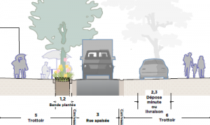 Le projet de réaménagement de la rue Auguste Mounié s’oriente, nous pouvons l’espérer, vers la transformation de la rue en une “zone de rencontre”, avec des aménagements pensés pour favoriser