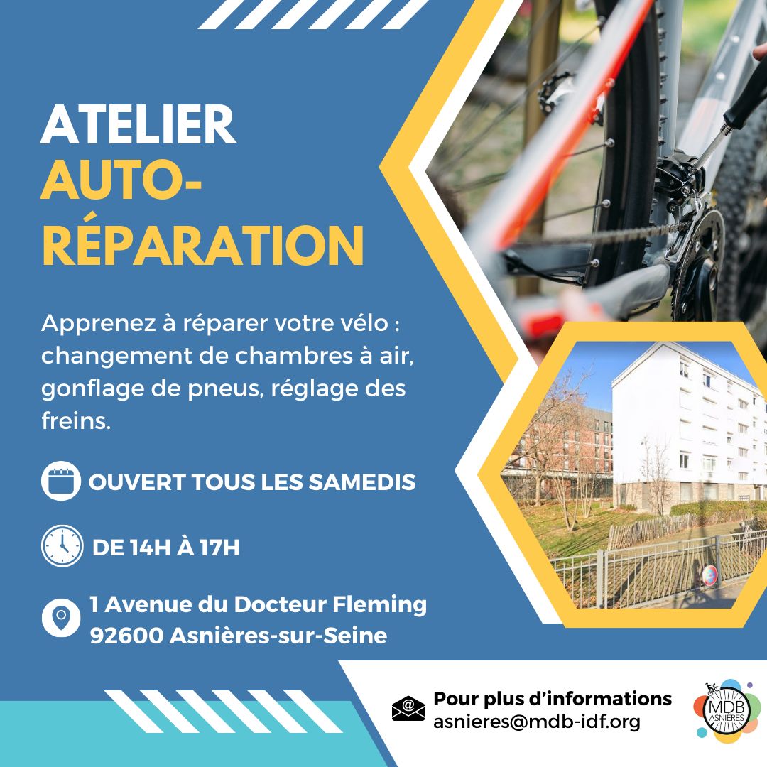 Vous souhaitez être plus autonome dans les petites réparations de votre vélo et faire des économies ? Notre association MDB Asnières vous propose de rejoindre l’atelier d’auto-réparation pour une séance d'apprentissage conviviale où nous vous montrerons comment prendre soin de votre vélo. 🚲 ✅ Changement de chambres à air ✅ Gonflage des pneus ✅ Réglage […] |