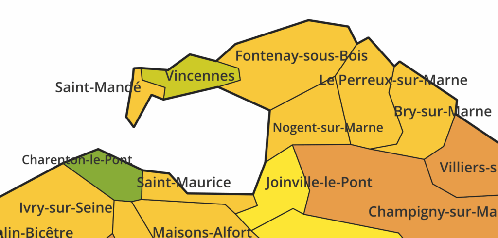 Et chez nous alors ? Ils sont exactement là où on les attendait : E ; soit un climat « plutôt défavorable » à la pratique du vélo. C’était déjà le cas en 2021 et rien ou presque n’a changé. Il y a tout de même quelques petites choses à dire, tant sur Nogent-sur-Marne que sur le Perreux-sur Marne. Il y a également quelques analyses rapides à faire avec les voisines et voisins, en attendant de se pencher plus longuement sur le détail.