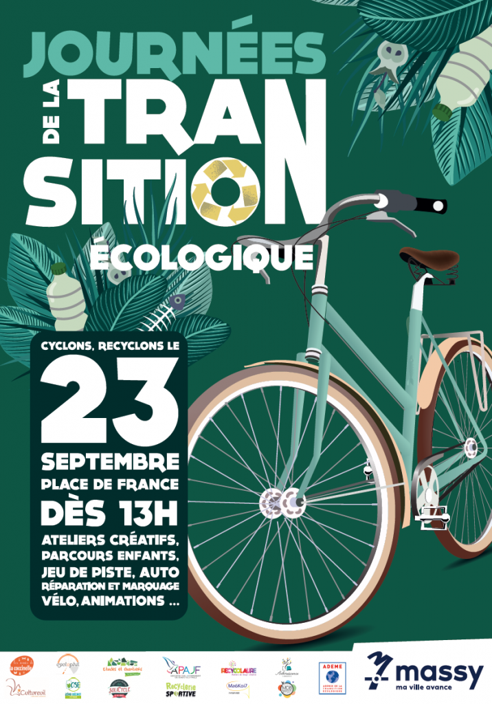 Journées de la transition écologique le samedi 23 septembre de 13 h à 17 h place de France (face à l’opéra) organisée par la ville de Massy.