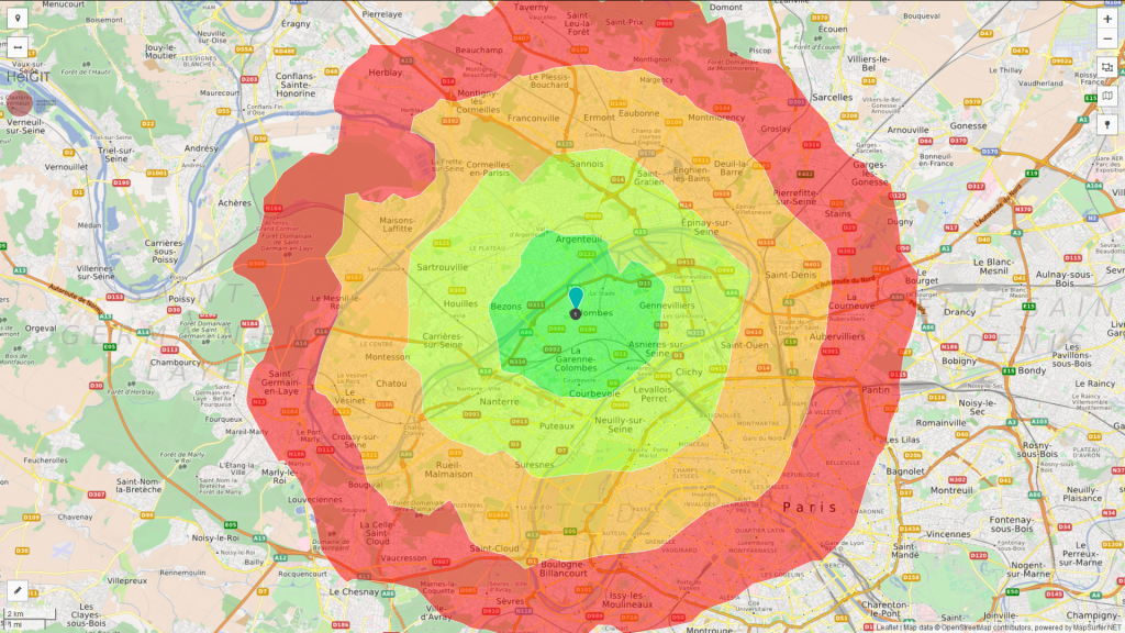 A vélo depuis Colombes, la Défense est à 15 minutes, les portes de Paris à moins de 30 minutes et il est possible de rejoindre la gare de Lyon ou de Montparnasse en moins d’une heure.