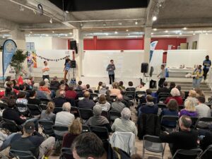 Accueil branche verte avec des élus et l’ensemble musical des Batuc’ados de Colombes