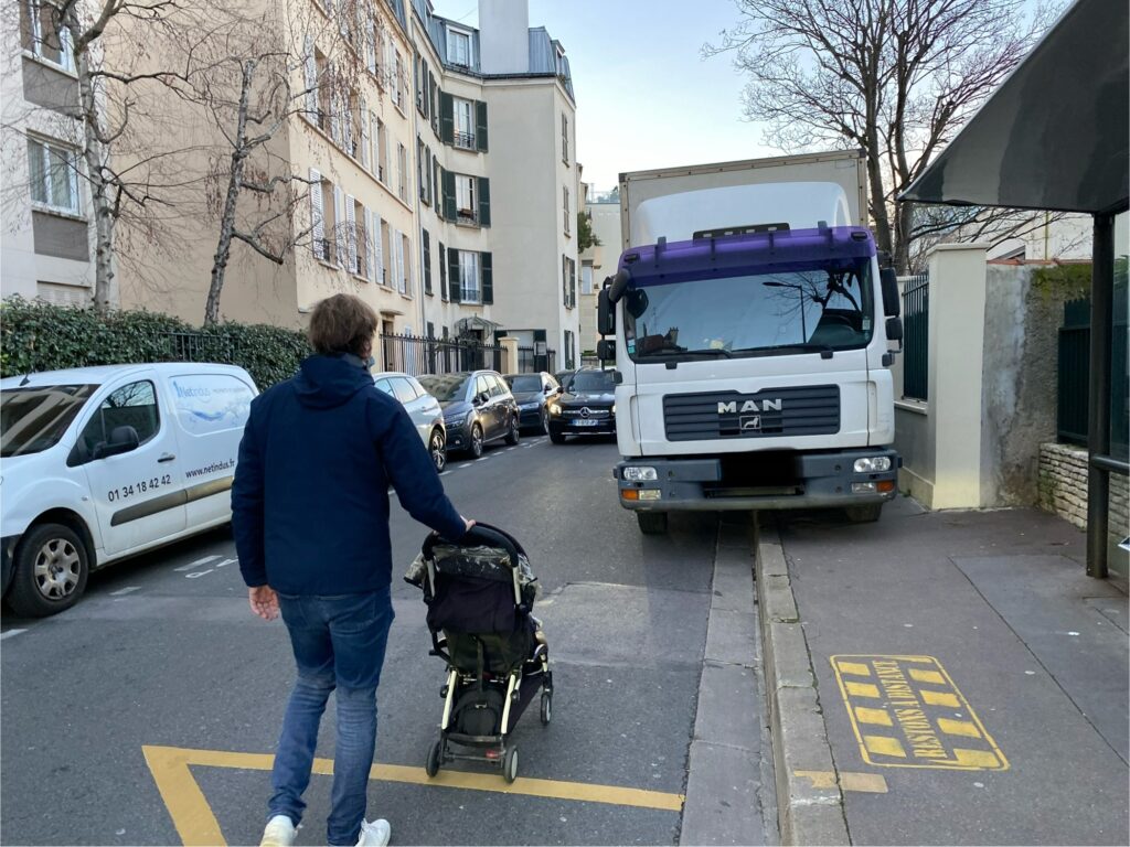 Autre problème remonté par les associations, la présence de camions devant les écoles à l’heure des écoliers. Ces véhicules ayant des angles morts sont particulièrement dangereux pour les enfants y compris quand le feu piéton est vert. La présence de camions a été documentée sur les réseaux sociaux par de nombreuses vidéos. La plupart des écoles de la ville sont concernées par la présence de camions de nettoyage ou de livraison. Les chauffeurs n’hésitent pas à faire des manoeuvre dangereuses à monter sur les trottoirs ou à se garer sur les passages piétons pour livrer. En particulier, on se souvient du cas de la petite Sixtine tuée dans le 16e arrondissement de Paris ou du jeune Adam tué en plein centre ville de Boulogne par un camion de nettoyage de la ville.