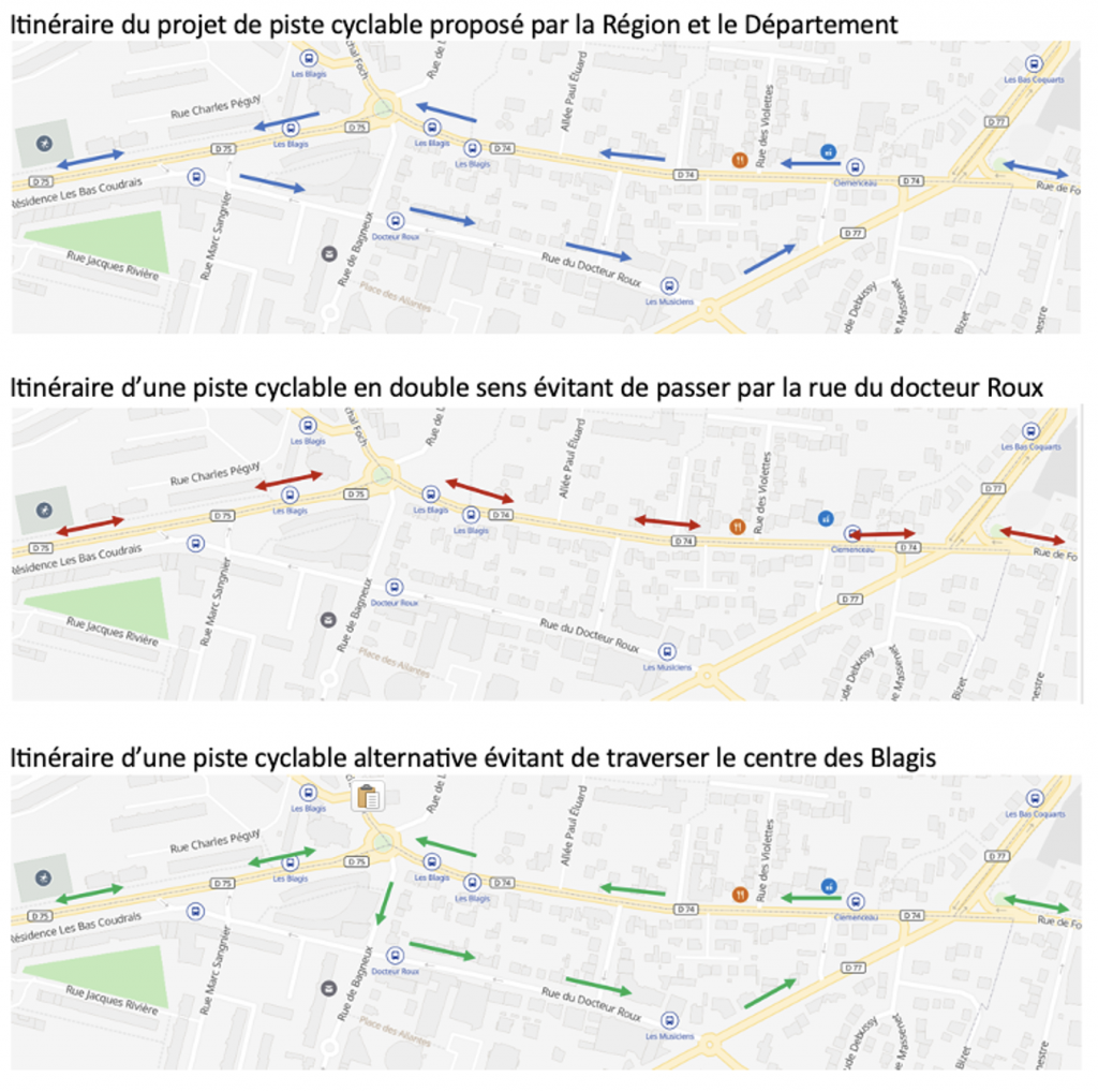 Il faut éviter que la piste cyclable traverse le centre des Blagis