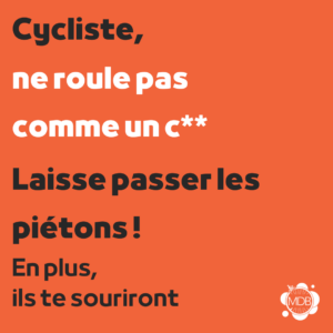 Nous avons lancé notre campagne de sensibilisation « Cycliste, ne roule pas comme un c** : laisse passer les piétons ! », ce vendredi 20 janvier devant l’école Jean Zay. Sollicités par les