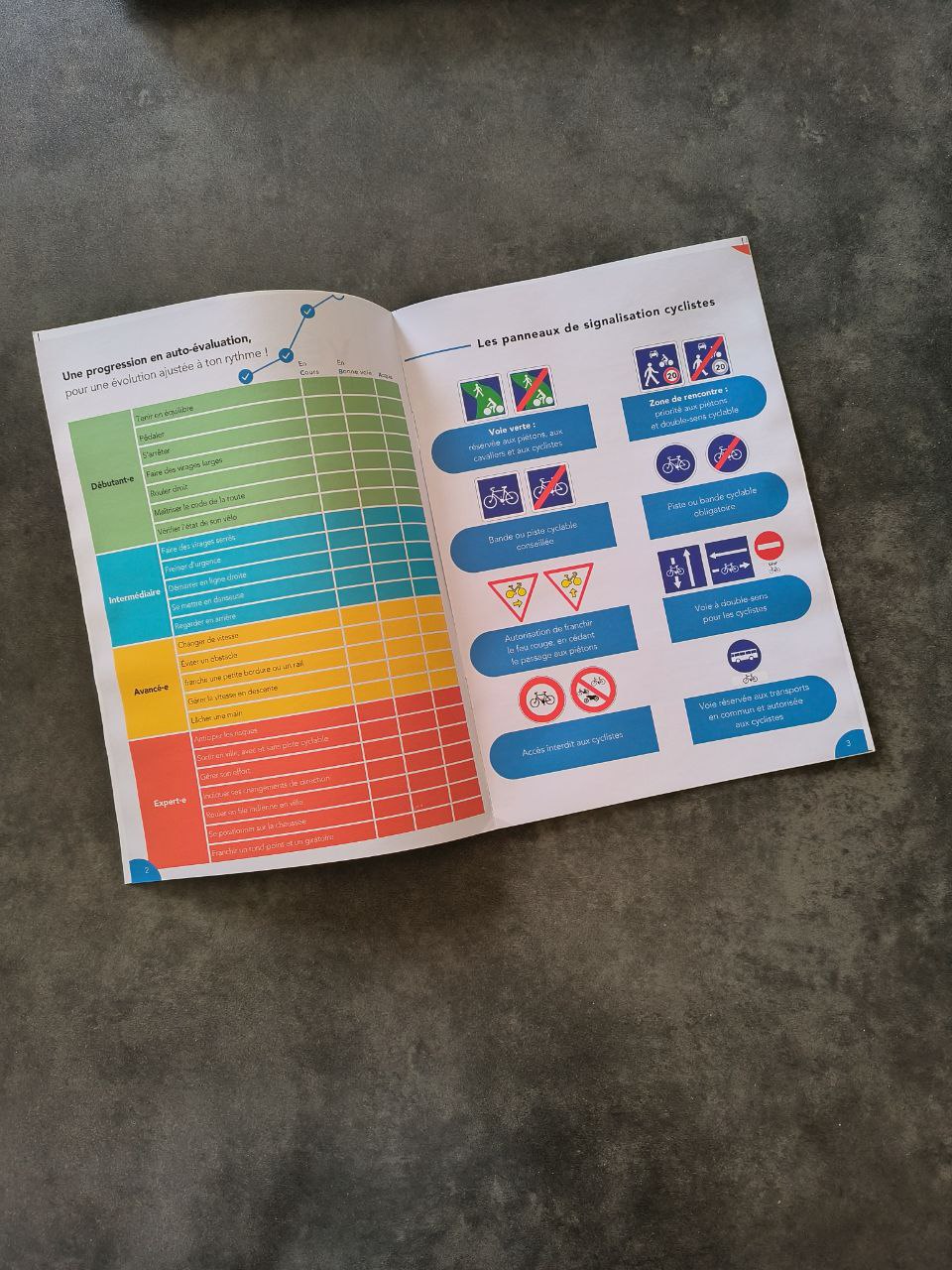 Les cours sont repartis par niveaux dans lesquels les élèves peuvent évoluer en fonction de leur progression.Les débutant.e.s cherchent leur équilibre, tournent leurs premiers coups de pédales et s’efforcent de suivre une trajectoire imposée.Les élèves du niveau intermédiaire multiplient les exercices pour acquérir l’agilité nécessaire avant de s’aventurer en ville. Et enfin, ceux du groupe avancé gagnent en confiance en ville et acquièrent les réflexes qui les mettent en sécurité.